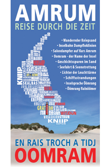 Die Inselbahn ist schon lange abgebaut, aber geradezu ein Amrumer Mythos. In keiner Darstellung findet man die Linienführung und Entwicklung des Gleisnetzes so exakt wiedergegeben wie in dieser Karte. Gezeigt wird auch wo der Kniepsand herkam, wo gestrandete Schiffe lagen und wo das im Sand versackte U-Boot liegt. Der Schiffsverkehr zur Insel wird insbesondere in seiner Phase der ab 1890 direkt ab Hamburg und Bremerhaven anreisenden Salondampfer betrachtet wie auch die Seefahrt als Erwerbsquelle, die Schiffsstrandungen, die Seenotrettung und die Lichter der Leuchttürme, die weit hinaus auf die offene Nordsee strahlen. Die "Öömrang fialnöömer" - die Amrumer Flurnamen - wurden ausschließlich für dieses Werk in dieser umfassenden Qualität recherchiert und in die Karte aufgenommen.